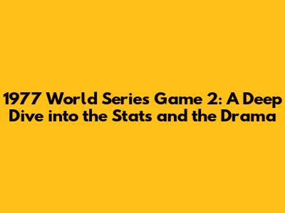 1977 World Series Game 2: Epic Showdown & Box Score