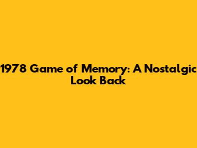 1978 Game Of Memory: A Nostalgic Look Back