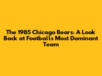 The Enduring Legacy of the 1985 Chicago Bears