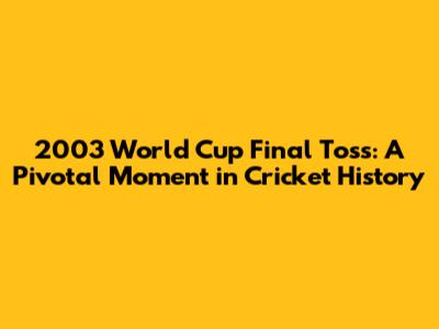 2003 World Cup Final Toss: Who Won And Why It Mattered