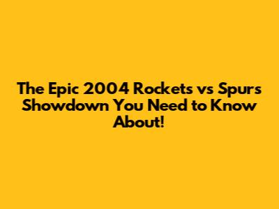 2004 Rockets Vs Spurs: A Classic Matchup