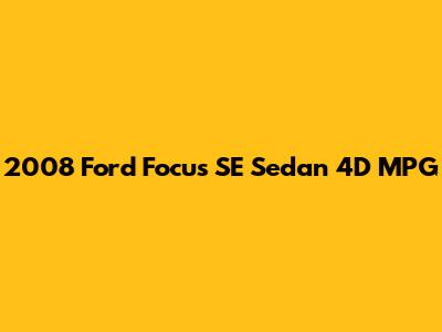 The 2008 Ford Focus SE Sedan 4D is a popular choice for drivers looking for a reliable and fuel-efficient vehicle. Understanding the miles per gallon (MPG) that this model offers is crucial for potential buyers and current owners alike. Let's dive into the details of what you can expect from the 2008 Ford Focus SE Sedan 4D in terms of fuel economy.