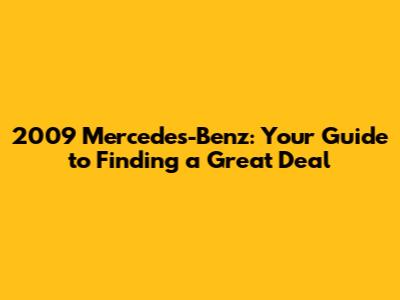 2009 Mercedes-Benz: Where To Buy And What To Know