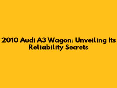 2010 Audi A3 Wagon: Is It Reliable? A Comprehensive Look