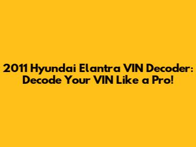 2011 Hyundai Elantra: Decode Your VIN Like A Pro!