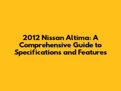2012 Nissan Altima: Specs, Features, And More!