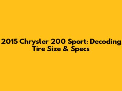 2015 Chrysler 200 Sport: Decoding Tire Size & Specs