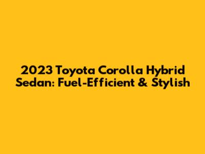 Hey guys! Let's dive into everything you need to know about the 2023 Toyota Corolla Hybrid Sedan. This car isn't just a mode of transportation; it's a statement. A statement that says, "I care about the environment, but I also want to look good doing it!" So, buckle up as we explore the ins and outs of this amazing hybrid.