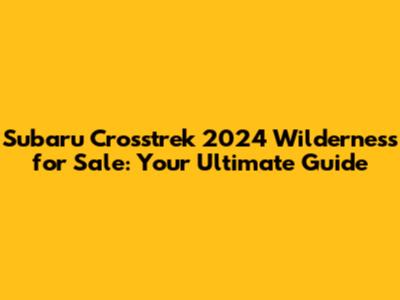 Finding a 2024 Subaru Crosstrek Wilderness for sale doesn't have to be a daunting task. By following these tips and doing your research, you can navigate the buying process with confidence and drive away in the adventure-ready vehicle of your dreams. Happy trails, and enjoy the ride!