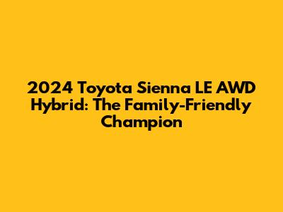 Hey everyone! Looking for a minivan that's got it all? Something that's spacious, fuel-efficient, and can handle whatever life throws your way? Well, the 2024 Toyota Sienna LE AWD Hybrid might just be the perfect fit for you! This article is all about diving deep into what makes this particular model so appealing, especially for families. We'll be going over everything from its performance and fuel economy to its interior features, safety tech, and overall value. Get ready to explore why the Sienna LE AWD Hybrid is making waves in the minivan market and why it could be the ultimate family ride for you.
