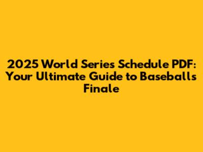 2025 World Series Schedule PDF: Your Ultimate Guide