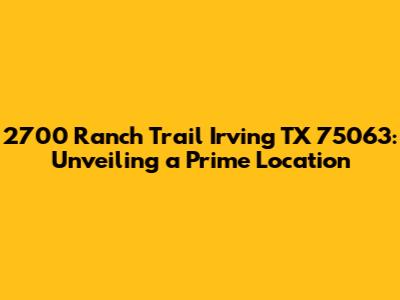 Hey everyone! Let's dive into the fascinating world of 2700 Ranch Trail in Irving, TX 75063. This address isn't just a string of numbers; it's a gateway to a vibrant community, offering a blend of suburban tranquility and urban convenience. Whether you're considering a move, curious about the neighborhood, or just love exploring new areas, this guide is for you. We'll explore everything from the real estate landscape to the local amenities, painting a comprehensive picture of what it's like to live and thrive at 2700 Ranch Trail. Get ready to discover the charm and advantages this address has to offer. I'll make it as easy as possible to understand, so you can easily decide if this is the place for you or not. Let's get started, shall we?