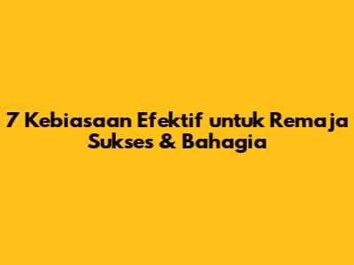 7 Kebiasaan Efektif Untuk Remaja Sukses & Bahagia
