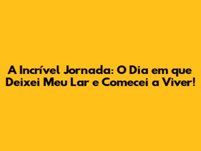 A Incrível Jornada: O Dia Em Que Deixei Meu Lar E Comecei A Viver!