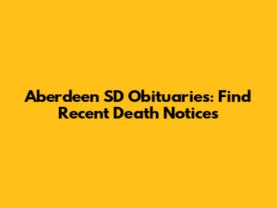 Aberdeen SD Obituaries: Find Recent Death Notices