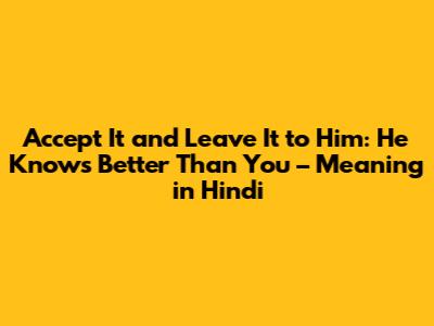 For our Hindi-speaking friends, the essence of "accept it and leave it to him, he knows better than you" can be understood through similar phrases that emphasize faith and surrender. Here are a few examples: