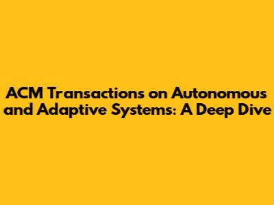 ACM Transactions On Autonomous And Adaptive Systems: A Deep Dive
