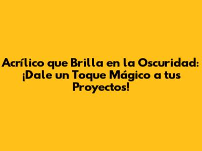 Acrílico Que Brilla En La Oscuridad: Guía Completa