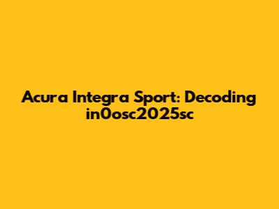 Hey guys! Today, we're diving deep into the Acura Integra Sport, specifically focusing on what the heck "in0osc2025sc" means. If you've stumbled upon this alphanumeric code and are scratching your head, you're in the right place. We'll break down what this could signify, explore the Acura Integra Sport, and give you the lowdown on why understanding these identifiers is super useful. Buckle up, it's gonna be a fun ride!