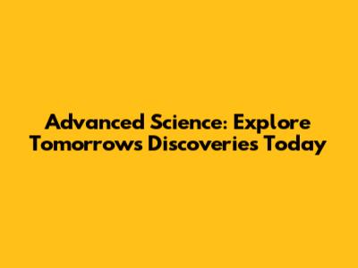 Advanced Science: Explore Tomorrow's Discoveries Today