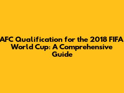 AFC Qualification For The 2018 FIFA World Cup: A Comprehensive Guide