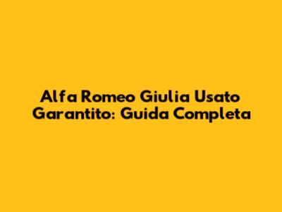 Alfa Romeo Giulia Usato Garantito: Guida Completa