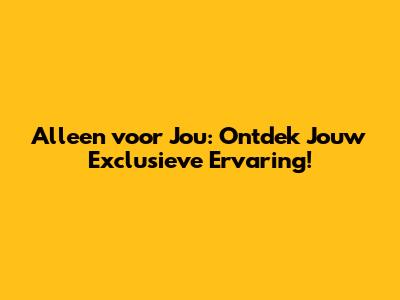 Alleen Voor Jou: Ontdek Jouw Exclusieve Ervaring!