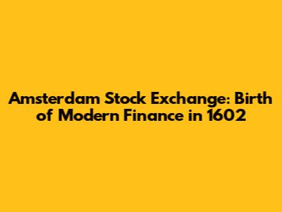 Amsterdam Stock Exchange: Birth Of Modern Finance In 1602
