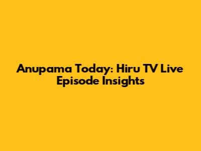 Anupama Today: Hiru TV Live Episode Insights