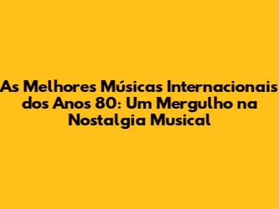 As Melhores Músicas Internacionais Dos Anos 80