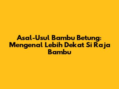 Hai, guys! Pernahkah kalian mendengar tentang bambu betung? Kalau belum, siap-siap ya, karena hari ini kita bakal ngobrolin salah satu jenis bambu paling ikonik dan serbaguna yang ada di Indonesia. Bambu betung ini bukan sembarang bambu, lho. Dia itu punya ukuran yang jumbo, batangnya kokoh, dan punya banyak banget kegunaan. Makanya, gak heran kalau dia dijuluki sebagai 'raja bambu'. Nah, buat kalian yang penasaran banget, bambu betung berasal dari mana sih sebenarnya? Yuk, kita telusuri bareng-bareng asal-usulnya yang menarik ini.