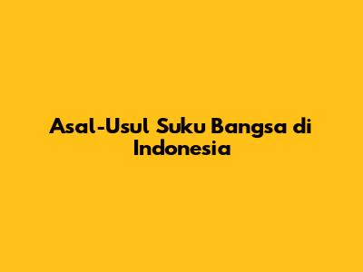 Asal-Usul Suku Bangsa Di Indonesia