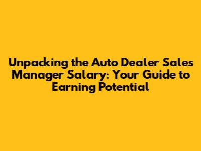 Unpacking the Auto Dealer Sales Manager Salary: Your Guide to Earning Potential