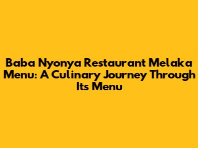 Baba Nyonya Melaka: A Culinary Journey Through Its Menu
