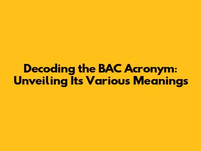 BAC: Decoding The Acronym And Its Meanings