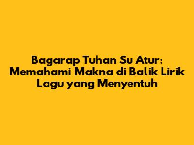Lirik lagu bagarap Tuhan su atur adalah karya seni yang indah dan bermakna. Lagu ini tidak hanya menghibur, tetapi juga memberikan inspirasi dan motivasi bagi pendengarnya. Melalui analisis lirik, melodi, dan pesan moral, kita bisa lebih menghargai karya seni ini.