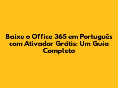 Baixe O Office 365 Em Português Com Ativador Grátis