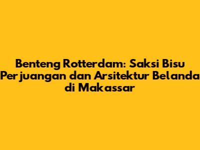 Benteng Rotterdam: Jejak Sejarah Belanda Di Makassar