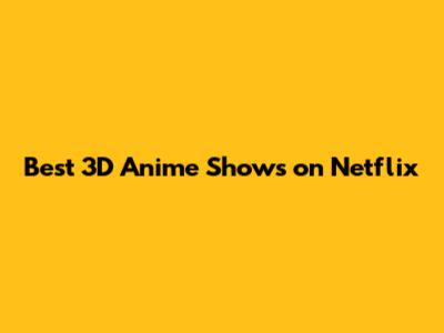 Top Picks: Must-Watch 3D Anime on Netflix