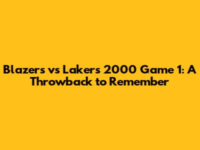 Blazers Vs Lakers 2000 Game 1: A Throwback To Remember