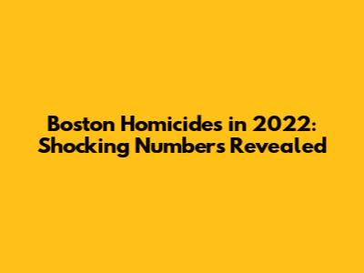 avigating the complexities surrounding Boston homicides in 2022, it's crucial to understand the data and its implications. Diving into the specifics, we aim to provide a clear and comprehensive overview of the homicide statistics in Boston during that year. This involves not just presenting the numbers but also contextualizing them within broader trends and societal factors. Law enforcement agencies meticulously record and analyze these incidents to understand patterns, allocate resources effectively, and implement strategies to prevent future occurrences. Understanding these numbers helps the community stay informed and engaged in efforts to improve public safety. Further analysis often includes breaking down homicides by neighborhood, demographics of victims and perpetrators, and the types of weapons used. Such detailed information is vital for policymakers and community leaders to develop targeted interventions. The transparency of this data is paramount, ensuring that the public is aware of the challenges and progress being made in addressing violence. Moreover, examining the clearance rates—the percentage of cases solved—provides insight into the effectiveness of investigative efforts and the challenges faced by law enforcement. It’s essential to consult official sources, such as the Boston Police Department's crime statistics, to ensure accuracy and reliability. These reports are typically available to the public and offer detailed information on various types of crime, including homicides. By staying informed, citizens can play an active role in supporting community safety initiatives and holding authorities accountable. Ultimately, addressing homicides requires a multifaceted approach involving law enforcement, community organizations, social services, and individual citizens working together to create a safer environment for everyone.