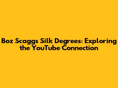 Boz Scaggs Silk Degrees: Exploring The YouTube Connection