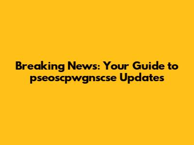 Breaking News: Your Guide To Pseoscpwgnscse Updates