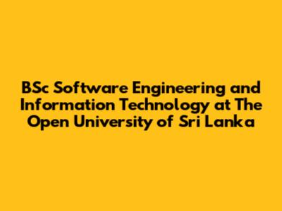 BSc Software Engineering & IT At OUSL: Your Guide