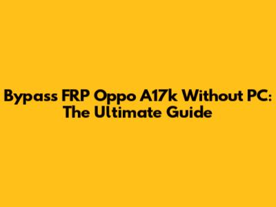 Bypass FRP Oppo A17k: No PC Needed!