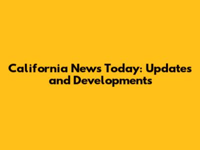 California News Today: Updates And Developments
