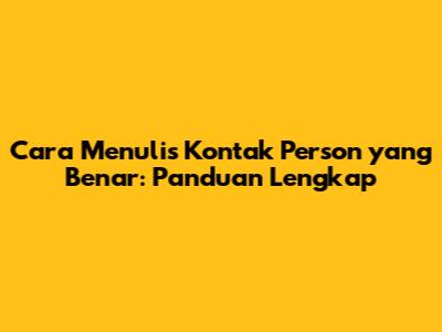 Cara Menulis Kontak Person Yang Benar: Panduan Lengkap