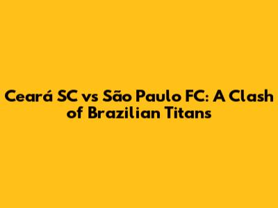 Get ready, football fans! We're diving deep into the heart of Brazilian football to explore the exciting matchup between Ceará Sporting Club (Ceará SC) and São Paulo Futebol Clube (São Paulo FC). This isn't just another game; it's a clash of history, passion, and skill. In this article, we'll break down everything you need to know, from the teams' backgrounds to their current form and what to expect when these two giants collide.