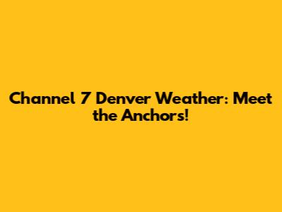 Hey guys! Ever wondered who brings you the daily scoop on Denver's wild weather? Well, buckle up because we're diving into the amazing team of weather anchors over at Channel 7 Denver! These folks are your go-to source for everything from sunshine forecasts to blizzard warnings. Let's get to know them a little better, shall we?