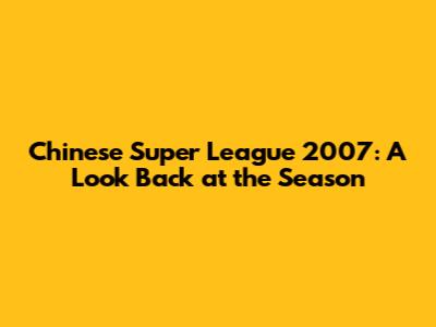 Chinese Super League 2007: A Look Back At The Season